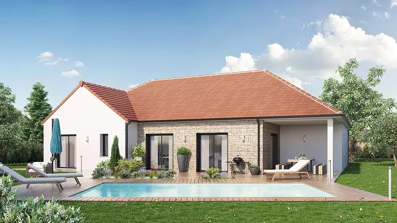 Un espace pensé pour vous, une maison à imaginer ! Et si votre maison s’adaptait à votre mode de vie ? Un salon-séjour spacieux et lumineux, une cuisine ouverte idéale pour partager des moments en famille, et un cellier astucieux pour plus de praticité. Avec 3 chambres confortables, une suite parentale avec dressing et salle d’eau, ainsi que deux salles de bain, chacun trouve son espace. Besoin d’un bureau, d’un espace détente ou d’un aménagement sur-mesure ? Tout est possible, tout est modulable !. Une maison qui vous ressemble, à façonner selon vos envies… Prêts à la personnaliser ?. . Pour un confort optimal et conforme à la RE2025, cette maison dispose d’une PAC avec plancher chauffant et volets roulants électriques. À noter : Le prix indiqué exclut les revêtements de sol des chambres, la cuisine aménagée, la peinture, la décoration, les raccordements, les frais de notaire et l’assurance dommages-ouvrage. (Piscine non contractuelle, non comprise dans le prix).