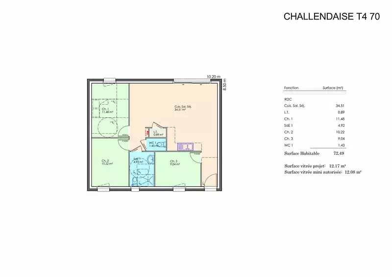 Une habitation de plain-pied très fonctionnelle, des dimensions raisonnables.