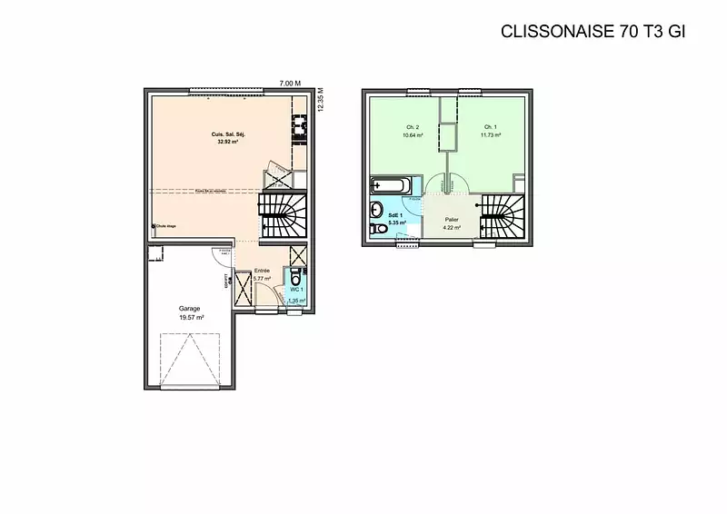 Très jolie maison traditionnelle à étage, la Clissonnaise conviendra aussi bien aux primo-accédants qu'aux couples ou aux petites familles. Elle se compose de 3 pièces, dont 2 chambres spacieuses, et est idéale pour un terrain étroit grâce à son design ingénieux.