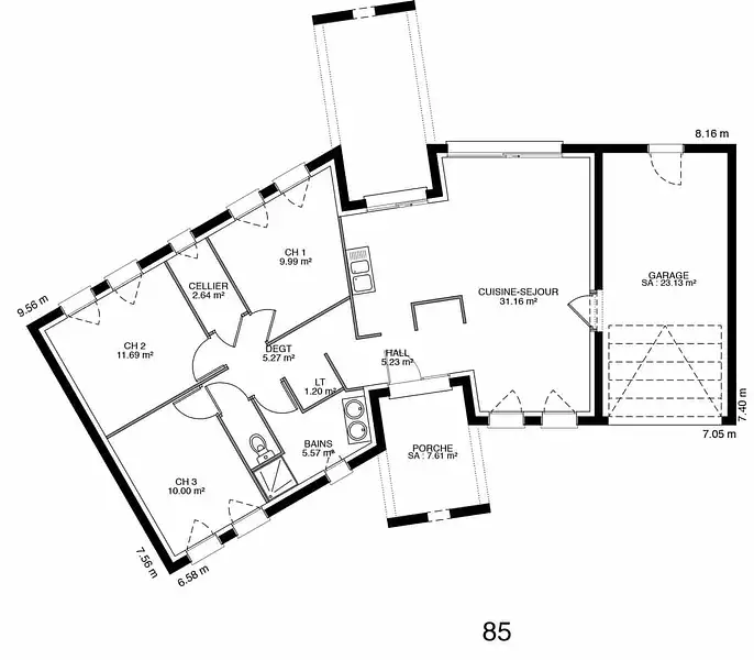 Avec une surface de 95 m², cette maison contemporaine de plain-pied est idéale pour les familles à la recherche de confort et de modernité. Déclinable en plusieurs versions, le modèle Vertium s'adapte parfaitement aux différents modes de vie et compositions familiales.