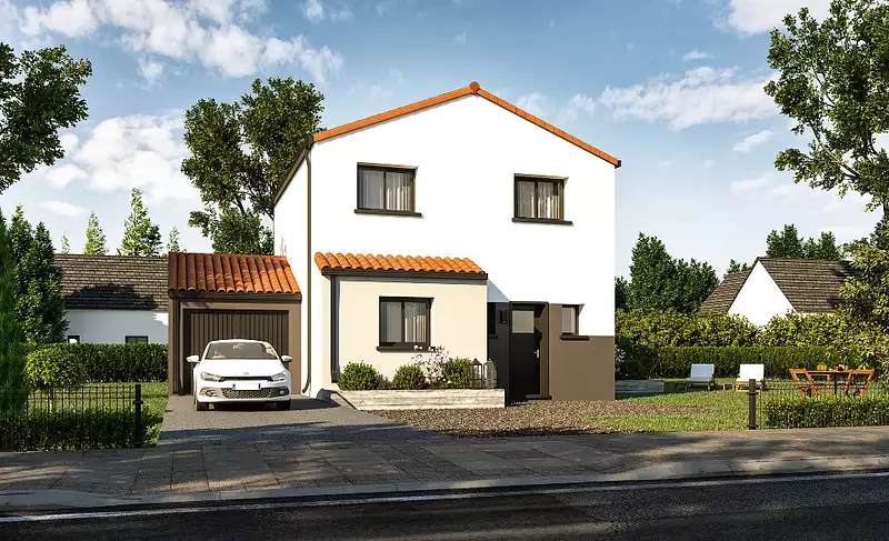 Emplacement privilégié - En vente à Chauvé (44320) : maison neuve 5 pièces de 89 m² et de 359 m² de terrain. Son intérieur comporte quatre chambres, une cuisine et deux salles de bains.