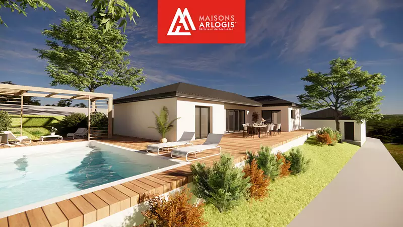 Maisons Arlogis Lyon Est vous propose des maisons 100% sur mesure. Visuel d'illustration. Le modèle est totalement adaptable à vos envies et besoins et personnalisable grâce à de nombreuses options de finition. Nous consulter pour plus d’informations. Le prix affiché comprend le coût du terrain et de la construction hors frais de notaire et taxes. Les annonces de terrains constructibles sont sélectionnées auprès de nos partenaires fonciers selon disponibilités et autorisation de publicité en vue de construire une maison neuve avec un Contrat de Construction de Maison Individuelle dans le cadre de la loi du 19/12/1990. Ces derniers sont soit des professionnels dûment habilités à la transaction immobilière, soit des particuliers. Les terrains sélectionnés sont disponibles à la date de la première parution de l’annonce. En aucun cas Maisons ARLOGIS ou ses collaborateurs ne sont propriétaires des terrains, ne jouent un rôle d’intermédiation ou de négociation sur la transaction et ne participent à la vente. Prix indiqués par nos partenaires fonciers.