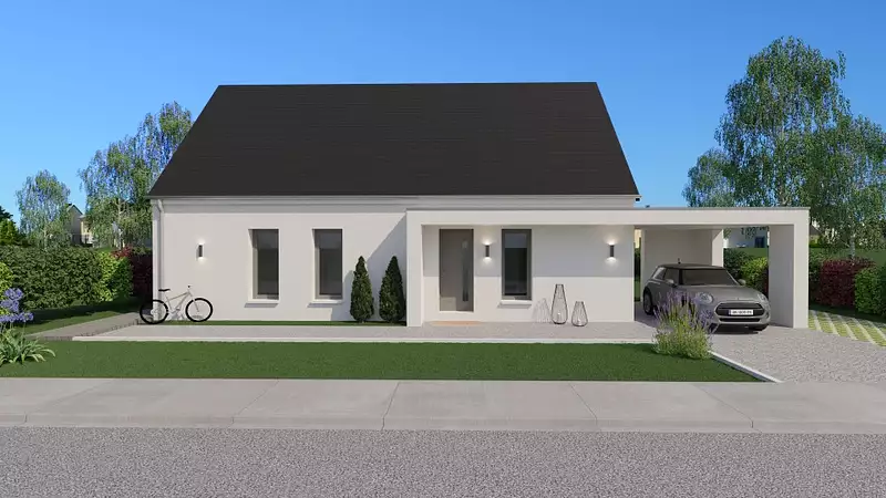 Terrain proposé par un partenaire foncier selon disponibilités et autorisation de publicité au prix de 56 000 €. Hors droit d'enregistrement et frais de notaire. Maison proposée, avec un contrat de construction de maison individuelle, dans le cadre de la loi du 19/12/1990, au prix de 153 800 € (Hors branchements et raccordements, papiers peints, peintures, revêtement de sol dans les chambres, qui sont chiffrés dans les travaux qui restent à charge du client. Tarif modifiable sans préavis). Étiquette énergie : A. Différents modèles disponibles pour ce terrain. Assurances et garanties du constructeur comprises (RC professionnelle, décennale, dommage ouvrage).