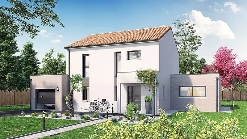 Design moderne & volumes optimisés ! Découvrez cette maison personnalisable, pensée pour conjuguer espace et luminosité. Avec 4 chambres, dont une suite parentale au rez-de-chaussée, et deux salles d’eau, chacun profite de son confort. Son vaste salon-séjour de 42 m² ouvert sur une cuisine lumineuse crée un cadre de vie chaleureux et convivial. Un agencement intelligent, un garage pratique et des finitions soignées… Imaginez, personnalisez et réalisez votre projet de vie !. Pour un confort optimal et conforme à la RE2025, cette maison dispose d’une PAC avec plancher chauffant, radiateurs à l’étage et volets roulants électriques. À noter : Le prix indiqué exclut les revêtements de sol des chambres, la cuisine aménagée, la peinture, la décoration, les raccordements, les frais de notaire et l’assurance dommages-ouvrage.