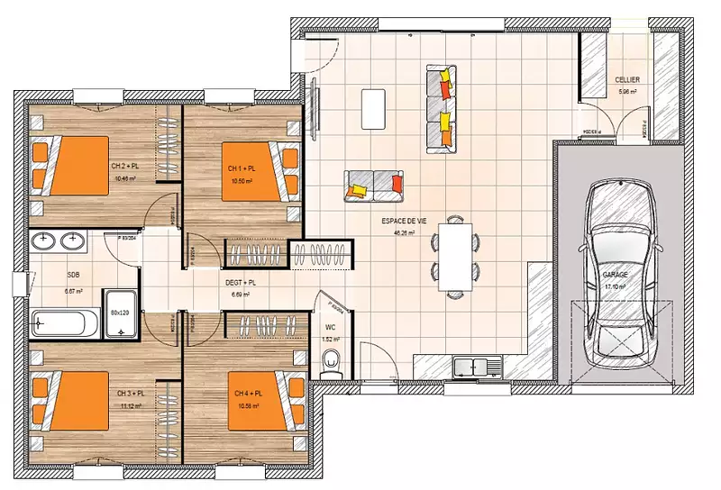 Proposée par MAISONS BERNARD JAMBERT – 5 pièces - 4 chambres - terrain 348 m²