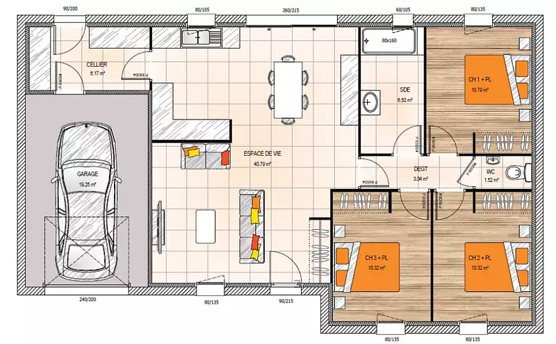 Proposée par MAISONS BERNARD JAMBERT – 5 pièces - 3 chambres - terrain 348 m²