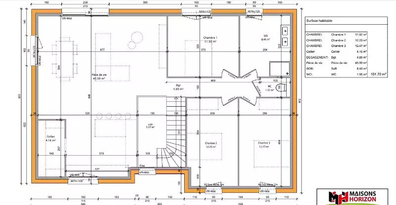 Proposée par MAISONS HORIZON – 5 pièces - 3 chambres - terrain 566 m²