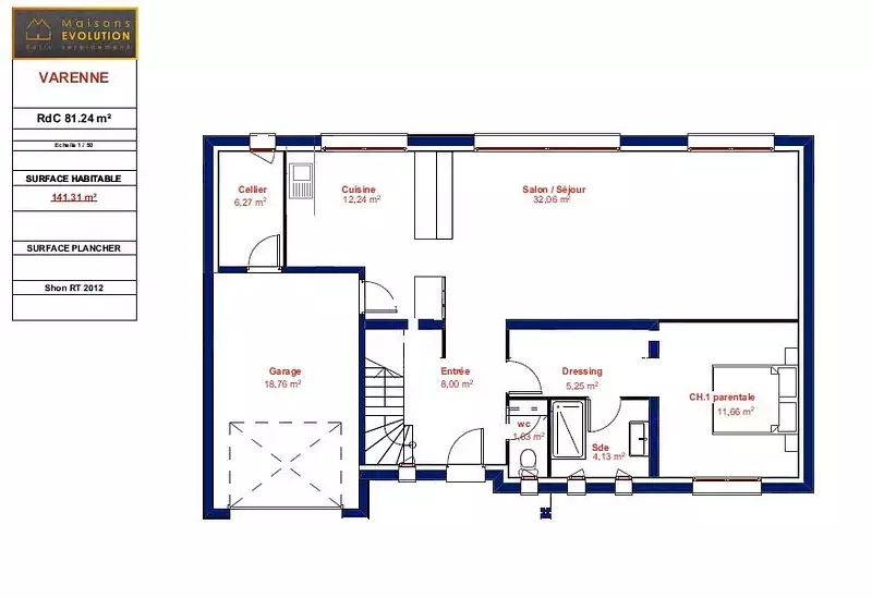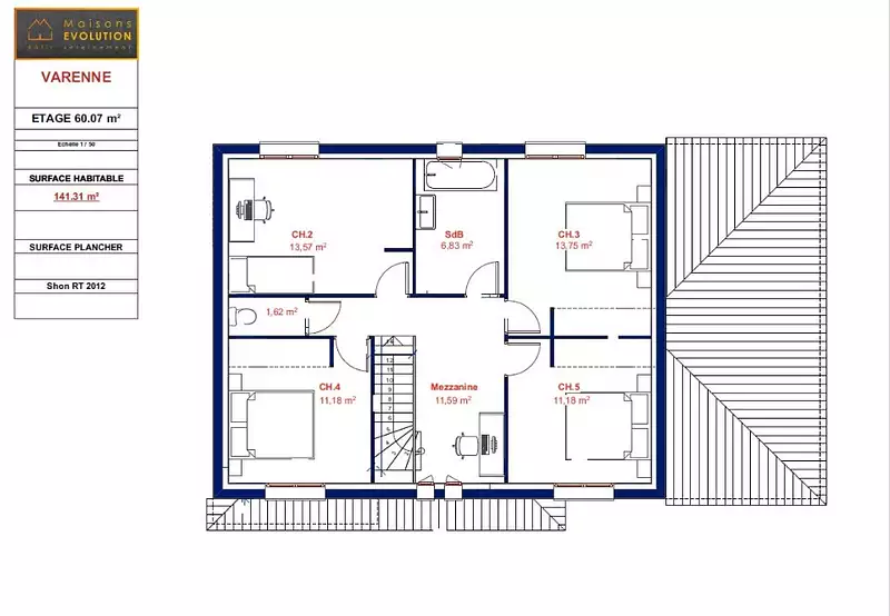 Proposée par MAISONS EVOLUTION – 6 pièces - 5 chambres - terrain 376 m²