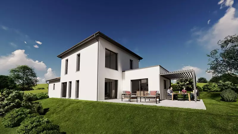 Le modèle est totalement adaptable à vos envies et besoins et personnalisable grâce à de nombreuses options de finition. Nous consulter pour plus d'informations. Le prix affiché comprend le coût du terrain et de la construction hors frais de notaire et taxes. Les annonces de terrains constructibles sont sélectionnées auprès de nos partenaires fonciers selon disponibilités et autorisation de publicité en vue de construire une maison neuve avec un Contrat de Construction de Maison Individuelle dans le cadre de la loi du 19/12/1990. Ces derniers sont soit des professionnels dûment habilités à la transaction immobilière, soit des particuliers. Les terrains sélectionnés sont disponibles à la date de la première parution de l'annonce. En aucun cas Maisons ARLOGIS ou ses collaborateurs ne sont propriétaires des terrains, ne jouent un rôle d'intermédiation ou de négociation sur la transaction et ne participent à la vente. Prix indiqués par nos partenaires fonciers. Visuel d'illustration. Le modèle est totalement adaptable à vos envies et besoins et personnalisable grâce à de nombreuses options de finition. Nous consulter pour plus d’informations. Le prix affiché comprend le coût du terrain et de la construction hors frais de notaire et taxes. Les annonces de terrains constructibles sont sélectionnées auprès de nos partenaires fonciers selon disponibilités et autorisation de publicité en vue de construire une maison neuve avec un Contrat de Construction de Maison Individuelle dans le cadre de la loi du 19/12/1990. Ces derniers sont soit des professionnels dûment habilités à la transaction immobilière, soit des particuliers. Les terrains sélectionnés sont disponibles à la date de la première parution de l’annonce. En aucun cas Maisons ARLOGIS ou ses collaborateurs ne sont propriétaires des terrains, ne jouent un rôle d’intermédiation ou de négociation sur la transaction et ne participent à la vente. Prix indiqués par nos partenaires fonciers.
