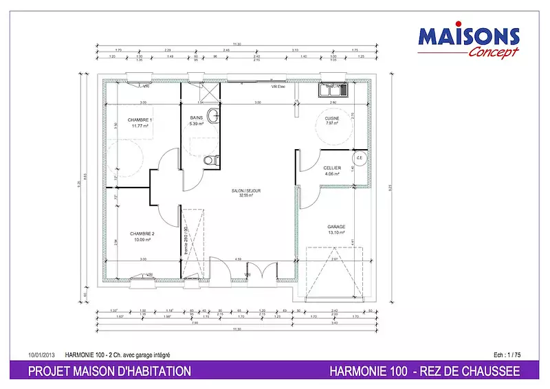 L'architecture d'""Harmonie"" se distingue par son garage intégré et ses combles aménageables, offrant ainsi une flexibilité remarquable pour s'adapter à vos projets de vie, qu'il s'agisse d'un espace de travail à domicile, d'une salle de jeux pour les enfants ou d'une chambre supplémentaire.