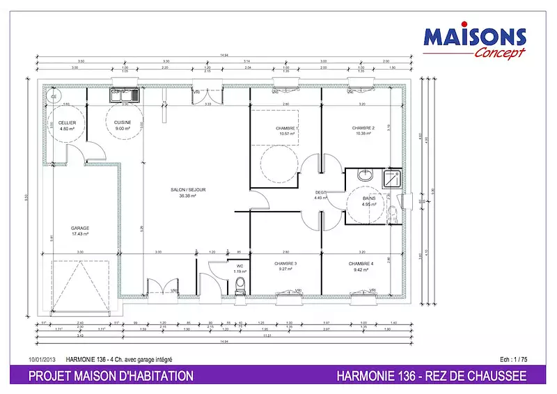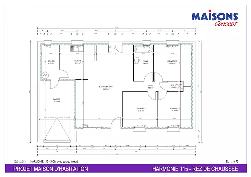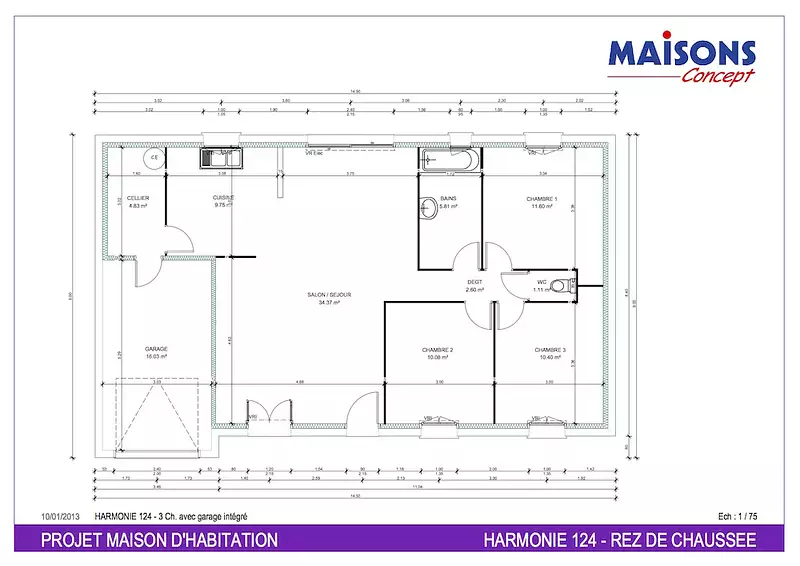 L'esthétique d'""Harmonie"" n'est pas en reste, avec son avancée au niveau du garage et sa toiture à faible pente, elle conserve le charme intemporel de la maison classique tout en y ajoutant une touche d'originalité. Que vous soyez à la recherche de votre première maison ou que vous souhaitiez offrir à votre famille un espace de vie plus adapté, ""Harmonie"" est conçue pour s'adapter à vos rêves et à vos projets.