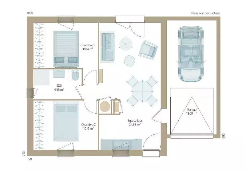 Proposée par MAISONS FRANCE CONFORT – 4 pièces - 2 chambres - terrain 507 m²