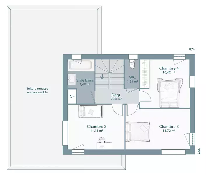 - Chambres : 4