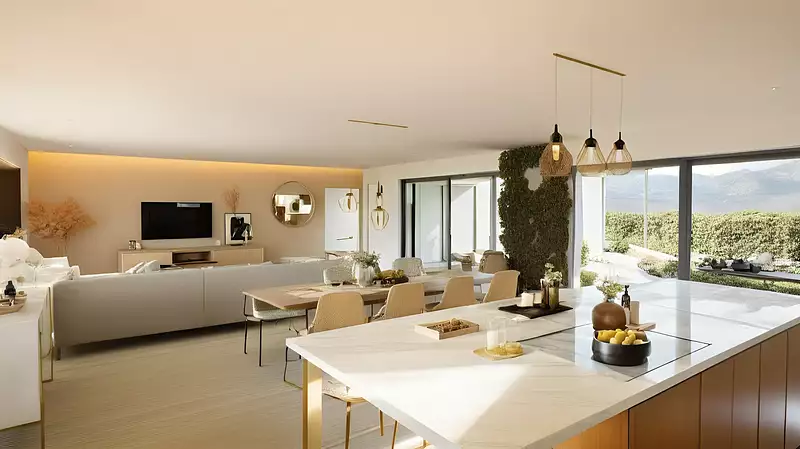 Le salon, généreux et lumineux de 58 m², devient le cœur de la maison, un lieu où partager des moments précieux.