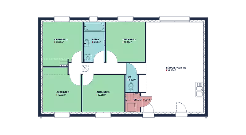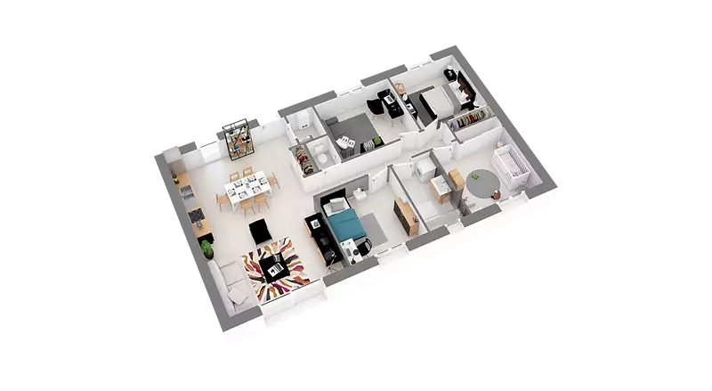 La Focus Family city sud est une maison lumineuse et écologique, offrant une belle surface habitable de 91 m². C'est l'option idéale pour les familles cherchant une maison de qualité avec une surface confortable pour un budget limité. Respectueuse de la règlementation RE2020 pour l'environnement, elle offre par conséquent un excellent rapport qualité-prix.
