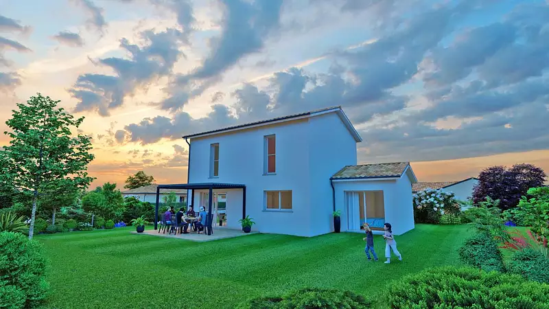 Le modèle est totalement adaptable à vos envies et besoins et personnalisable grâce à de nombreuses options de finition. Nous consulter pour plus d'informations. Le prix affiché comprend le coût du terrain et de la construction hors frais de notaire et taxes. Les annonces de terrains constructibles sont sélectionnées auprès de nos partenaires fonciers selon disponibilités et autorisation de publicité en vue de construire une maison neuve avec un Contrat de Construction de Maison Individuelle dans le cadre de la loi du 19/12/1990. Ces derniers sont soit des professionnels dûment habilités à la transaction immobilière, soit des particuliers. Les terrains sélectionnés sont disponibles à la date de la première parution de l'annonce. En aucun cas Maisons ARLOGIS ou ses collaborateurs ne sont propriétaires des terrains, ne jouent un rôle d'intermédiation ou de négociation sur la transaction et ne participent à la vente. Prix indiqués par nos partenaires fonciers. Visuel d'illustration. Le modèle est totalement adaptable à vos envies et besoins et personnalisable grâce à de nombreuses options de finition. Nous consulter pour plus d’informations. Le prix affiché comprend le coût du terrain et de la construction hors frais de notaire et taxes. Les annonces de terrains constructibles sont sélectionnées auprès de nos partenaires fonciers selon disponibilités et autorisation de publicité en vue de construire une maison neuve avec un Contrat de Construction de Maison Individuelle dans le cadre de la loi du 19/12/1990. Ces derniers sont soit des professionnels dûment habilités à la transaction immobilière, soit des particuliers. Les terrains sélectionnés sont disponibles à la date de la première parution de l’annonce. En aucun cas Maisons ARLOGIS ou ses collaborateurs ne sont propriétaires des terrains, ne jouent un rôle d’intermédiation ou de négociation sur la transaction et ne participent à la vente. Prix indiqués par nos partenaires fonciers.