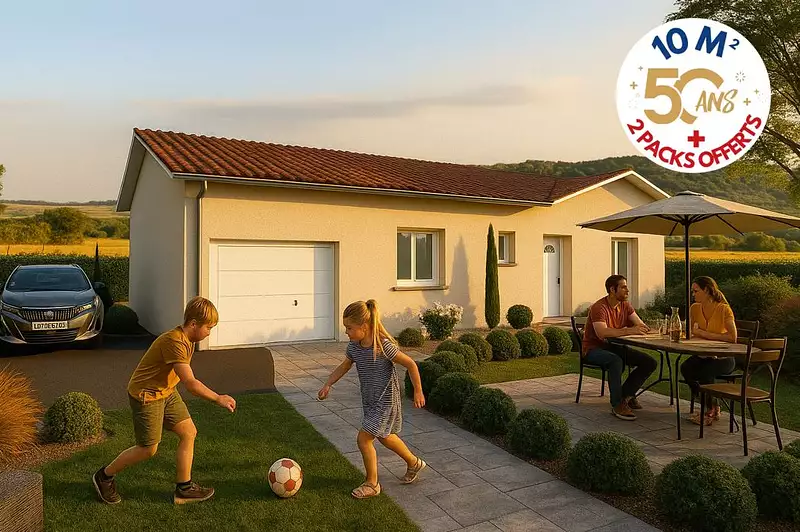 Découvrez nos offres spéciales pour célébrer nos 50 ans ! Profitez de 10 m² supplémentaires pour rêver encore plus grand, une cuisine équipée offerte et un pack déco pour sublimer votre intérieur.