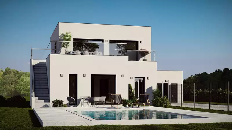 > Les frais de notaire, VRD, viabilités et travaux divers ne sont pas inclus dans le prix. Visuel d'illustration. Le modèle est totalement adaptable à vos envies et besoins et personnalisable grâce à de nombreuses options de finition. Nous consulter pour plus d’informations. Le prix affiché comprend le coût du terrain et de la construction hors frais de notaire et taxes. Les annonces de terrains constructibles sont sélectionnées auprès de nos partenaires fonciers selon disponibilités et autorisation de publicité en vue de construire une maison neuve avec un Contrat de Construction de Maison Individuelle dans le cadre de la loi du 19/12/1990. Ces derniers sont soit des professionnels dûment habilités à la transaction immobilière, soit des particuliers. Les terrains sélectionnés sont disponibles à la date de la première parution de l’annonce. En aucun cas Maisons ARLOGIS ou ses collaborateurs ne sont propriétaires des terrains, ne jouent un rôle d’intermédiation ou de négociation sur la transaction et ne participent à la vente. Prix indiqués par nos partenaires fonciers.