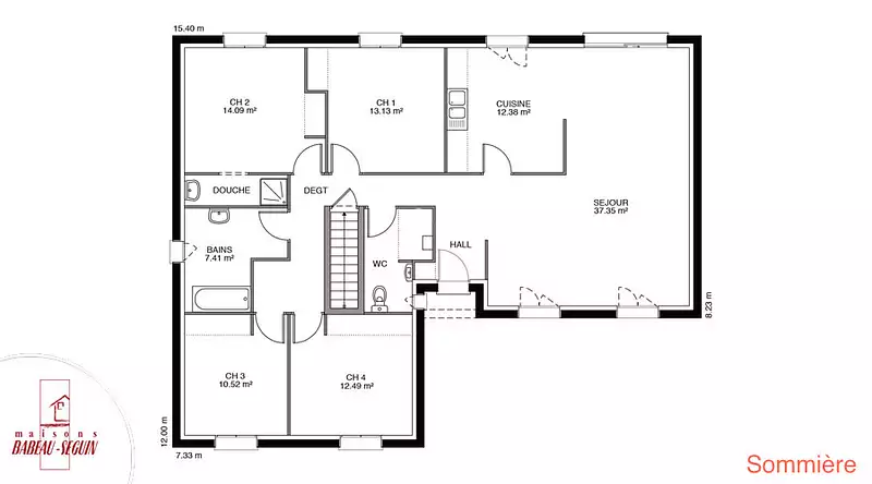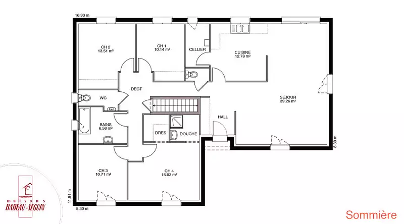 La Sommière dispose de 3 chambres spacieuses et de 4 pièces bien agencées, offrant un cadre de vie confortable et fonctionnel. Vous avez la possibilité de choisir entre un toit à 2 pans ou à 4 pans, selon vos préférences esthétiques et architecturales. De plus, cette maison peut être équipée d'un garage ou d'un sous-sol en option, répondant ainsi à vos besoins spécifiques en termes de rangement et de stationnement.