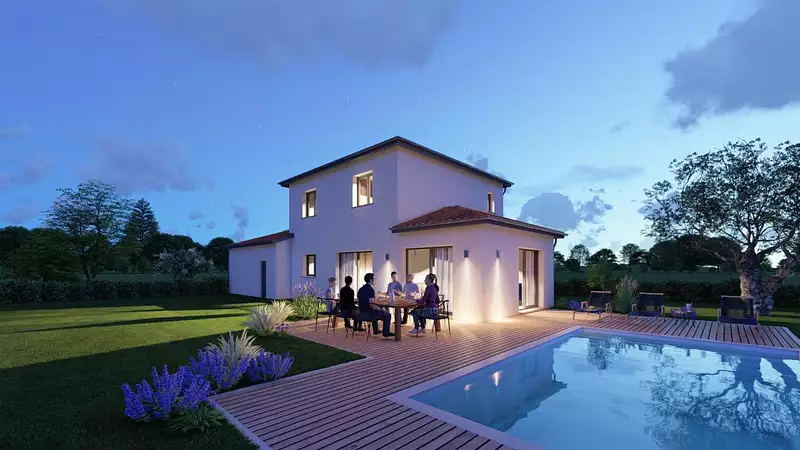 Le modèle est totalement adaptable à vos envies et besoins et personnalisable grâce à de nombreuses options de finition. Nous consulter pour plus d'informations. Le prix affiché comprend le coût du terrain et de la construction hors frais de notaire et taxes. Les annonces de terrains constructibles sont sélectionnées auprès de nos partenaires fonciers selon disponibilités et autorisation de publicité en vue de construire une maison neuve avec un Contrat de Construction de Maison Individuelle dans le cadre de la loi du 19/12/1990. Ces derniers sont soit des professionnels dûment habilités à la transaction immobilière, soit des particuliers. Les terrains sélectionnés sont disponibles à la date de la première parution de l'annonce. En aucun cas Maisons ARLOGIS ou ses collaborateurs ne sont propriétaires des terrains, ne jouent un rôle d'intermédiation ou de négociation sur la transaction et ne participent à la vente. Prix indiqués par nos partenaires fonciers. Visuel d'illustration. Le modèle est totalement adaptable à vos envies et besoins et personnalisable grâce à de nombreuses options de finition. Nous consulter pour plus d’informations. Le prix affiché comprend le coût du terrain et de la construction hors frais de notaire et taxes. Les annonces de terrains constructibles sont sélectionnées auprès de nos partenaires fonciers selon disponibilités et autorisation de publicité en vue de construire une maison neuve avec un Contrat de Construction de Maison Individuelle dans le cadre de la loi du 19/12/1990. Ces derniers sont soit des professionnels dûment habilités à la transaction immobilière, soit des particuliers. Les terrains sélectionnés sont disponibles à la date de la première parution de l’annonce. En aucun cas Maisons ARLOGIS ou ses collaborateurs ne sont propriétaires des terrains, ne jouent un rôle d’intermédiation ou de négociation sur la transaction et ne participent à la vente. Prix indiqués par nos partenaires fonciers.