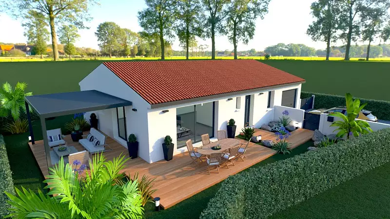 Terrain proposé par un partenaire foncier selon disponibilités et autorisation de publicité au prix de 193 800 €. Hors droit d'enregistrement et frais de notaire. Terrain + Maison proposés au prix de 164 700 € (Hors branchements et raccordements, papiers peints, peintures, revêtement de sol dans les chambres. Tarif modifiable sans préavis). Etiquette énergie : A. Différents modèles disponibles pour ce terrain. . HEXAOM Services est enregistré auprès de l'ORIAS en tant que Courtier en financement, Niveau 1, sous le numéro 14001345.