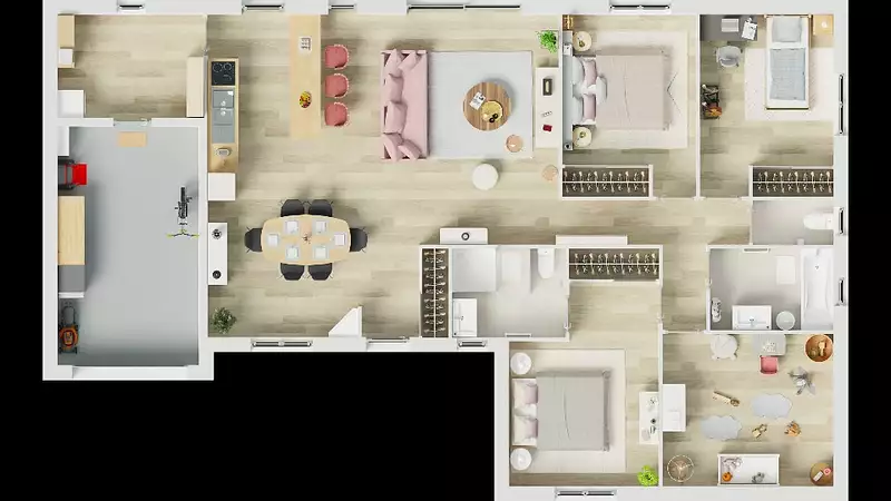 Terrain proposé par un partenaire foncier selon disponibilités et autorisation de publicité au prix de 97 260 €. Hors droit d'enregistrement et frais de notaire. Terrain + Maison proposés au prix de 258 640 € (Hors branchements et raccordements, papiers peints, peintures, revêtement de sol dans les chambres. Tarif modifiable sans préavis). Etiquette énergie : A. Différents modèles disponibles pour ce terrain.