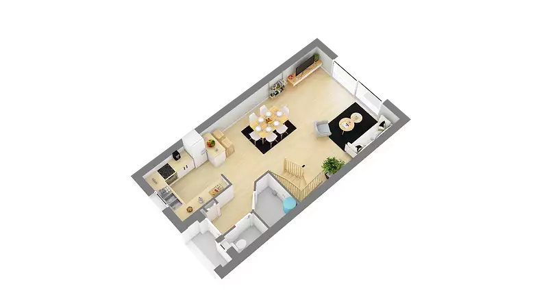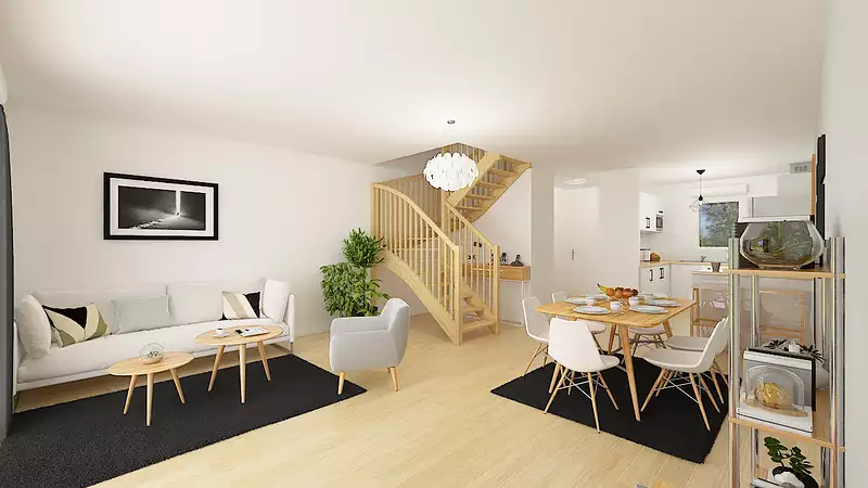 Prix hors frais de notaire, raccordements, branchements, taxes, aménagements extérieurs, peintures et revêtements de sol.