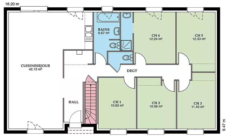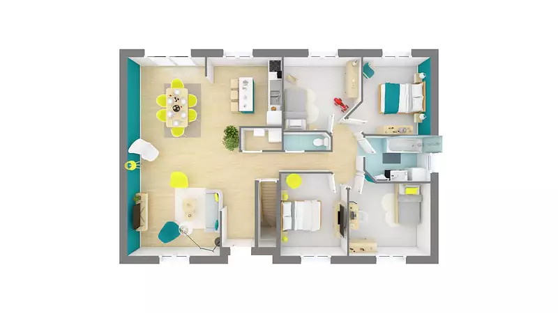 Ce modèle se compose de 4 pièces lumineuses et spacieuses, dont 4 chambres confortables, offrant ainsi un cadre de vie idéal pour une famille. Chaque espace a été pensé pour maximiser le confort et la fonctionnalité, tout en respectant les critères de la norme RE2020. Vous bénéficierez d'un intérieur à la fois moderne et chaleureux, avec la possibilité de personnaliser les finitions selon vos goûts et vos besoins.