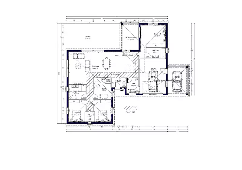 Sur un terrain de 547 m2, entièrement viabilisé et exposé Sud-Ouest, nous vous proposons ce projet de construction moderne comprenant: