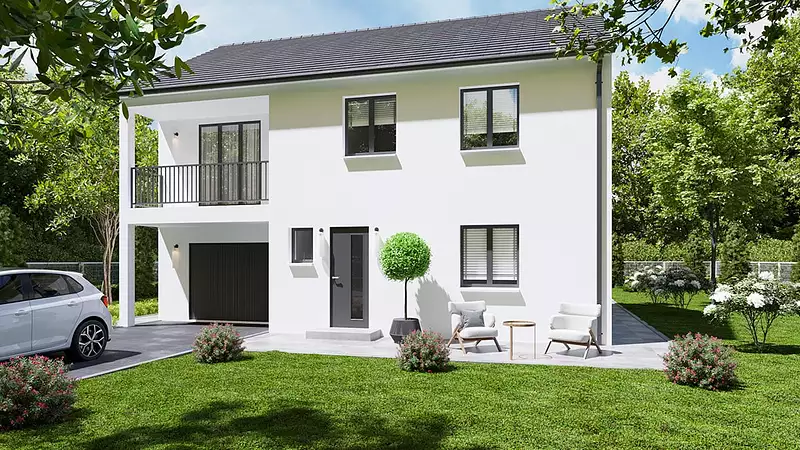 Cette maison est également équipée d'un garage intégré, vous permettant de stationner votre véhicule en toute sécurité. Les menuiseries en aluminium, très demandées par nos clients, ajoutent une touche de modernité et de durabilité à l'ensemble.