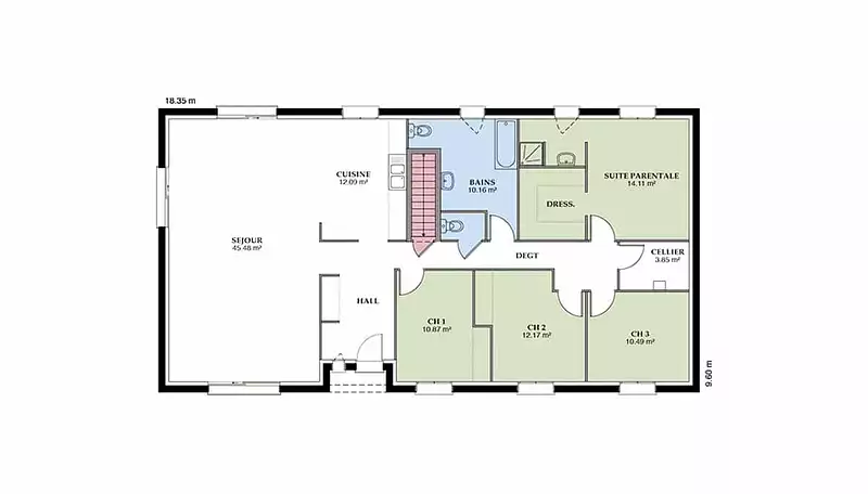 En effet, il est possible de bâtir une charmante petite maison de 48m² pour un couple, ou au contraire, une maison avec cinq chambres, voire plus… certaines options comprennent également une suite parentale. Plus il y a d’espace, plus il y a de rangements bien sûr. Avec ou sans garage intégré, votre maison sera à votre image, vraiment !