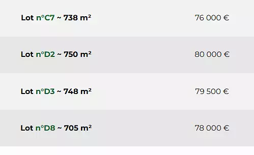 Autre lot disponible de 705 à 750 m2 78 000 à 80 000€