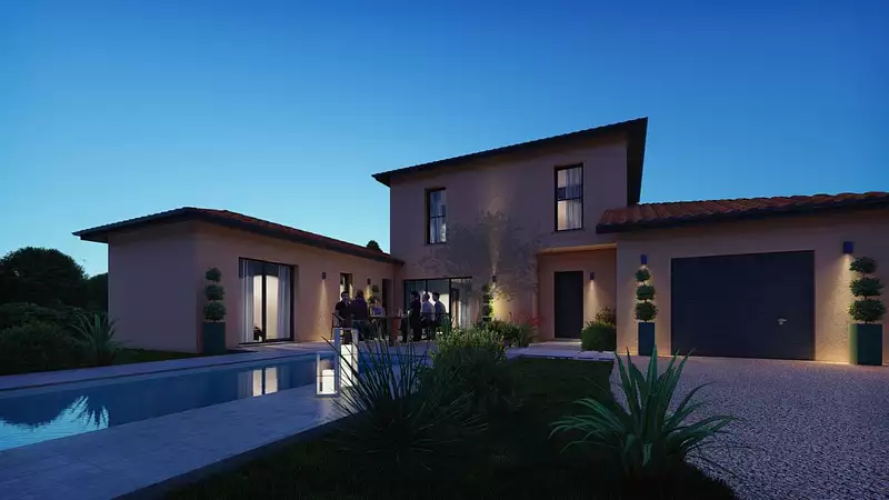 Le modèle est totalement adaptable à vos envies et besoins et personnalisable grâce à de nombreuses options de finition. Nous consulter pour plus d'informations. Le prix affiché comprend le coût du terrain et de la construction hors frais de notaire et taxes. Les annonces de terrains constructibles sont sélectionnées auprès de nos partenaires fonciers selon disponibilités et autorisation de publicité en vue de construire une maison neuve avec un Contrat de Construction de Maison Individuelle dans le cadre de la loi du 19/12/1990. Ces derniers sont soit des professionnels dûment habilités à la transaction immobilière, soit des particuliers. Les terrains sélectionnés sont disponibles à la date de la première parution de l'annonce. En aucun cas Maisons ARLOGIS ou ses collaborateurs ne sont propriétaires des terrains, ne jouent un rôle d'intermédiation ou de négociation sur la transaction et ne participent à la vente. Prix indiqués par nos partenaires fonciers. Visuel d'illustration. Le modèle est totalement adaptable à vos envies et besoins et personnalisable grâce à de nombreuses options de finition. Nous consulter pour plus d’informations. Le prix affiché comprend le coût du terrain et de la construction hors frais de notaire et taxes. Les annonces de terrains constructibles sont sélectionnées auprès de nos partenaires fonciers selon disponibilités et autorisation de publicité en vue de construire une maison neuve avec un Contrat de Construction de Maison Individuelle dans le cadre de la loi du 19/12/1990. Ces derniers sont soit des professionnels dûment habilités à la transaction immobilière, soit des particuliers. Les terrains sélectionnés sont disponibles à la date de la première parution de l’annonce. En aucun cas Maisons ARLOGIS ou ses collaborateurs ne sont propriétaires des terrains, ne jouent un rôle d’intermédiation ou de négociation sur la transaction et ne participent à la vente. Prix indiqués par nos partenaires fonciers.