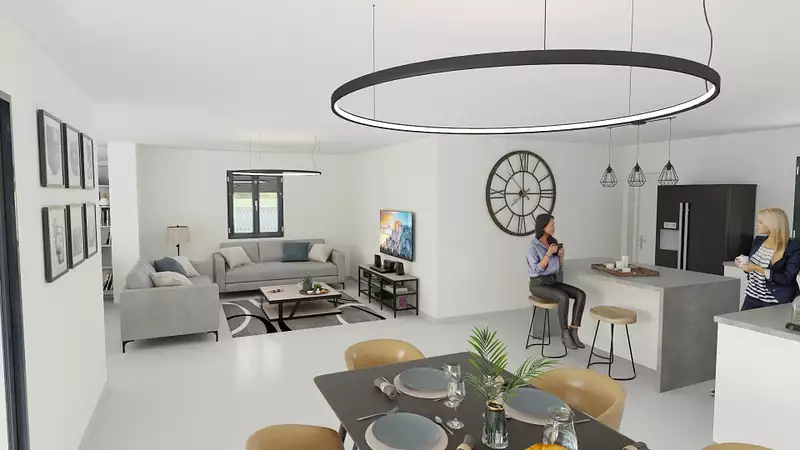 Terrain proposé par un partenaire foncier selon disponibilités et autorisation de publicité au prix de 260 000 €. Hors droit d'enregistrement et frais de notaire. Maison proposée, avec un contrat de construction de maison individuelle, dans le cadre de la loi du 19/12/1990, au prix de 290 000 € (Hors branchements et raccordements, papiers peints, peintures, revêtement de sol dans les chambres, qui sont chiffrés dans les travaux qui restent à charge du client. Tarif modifiable sans préavis). Étiquette énergie : A. Différents modèles disponibles pour ce terrain. Assurances et garanties du constructeur comprises (RC professionnelle, décennale, dommage ouvrage).