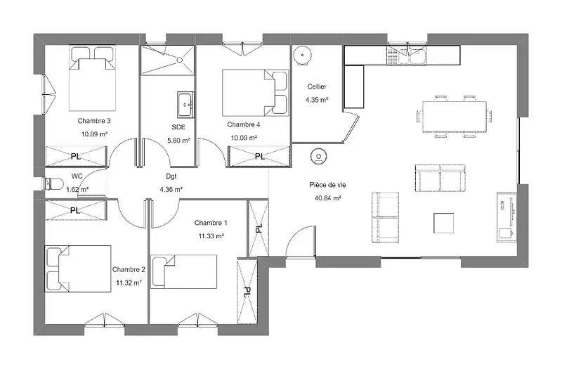 Proposée par MAISONS BRUNO PETIT GHPA – 4 pièces - 3 chambres - terrain 2 030 m²