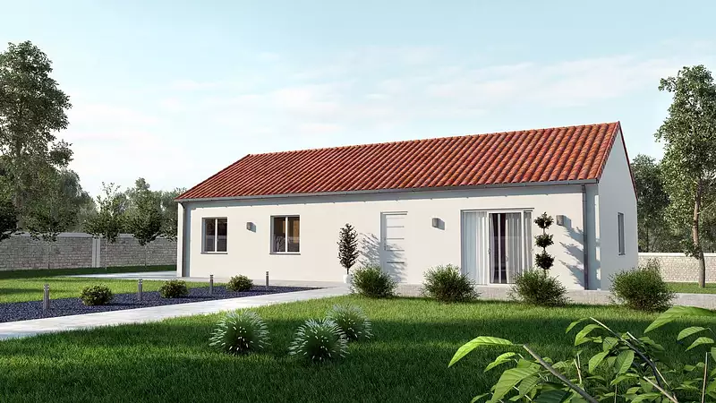 Nous vous proposons cette maison neuve, baptisée Dina, un modèle conçu avec soin pour s'adapter harmonieusement à des terrains en pente, typiques de régions comme l'Auvergne ou le Massif Central. Avec une surface habitable de 77 m², cette maison de plain-pied est pensée pour s'intégrer parfaitement à son environnement tout en maximisant l'espace et la luminosité.