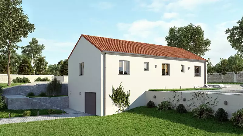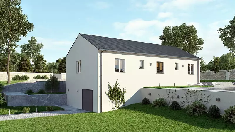 Avec son garage intégré, la Dina est non seulement pratique mais aussi esthétique, s'adaptant avec élégance aux terrains pentus grâce à ses différentes options de toiture. Que vous optiez pour un toit à 2 ou 4 pans, chaque détail a été pensé pour offrir une harmonie visuelle et fonctionnelle.
