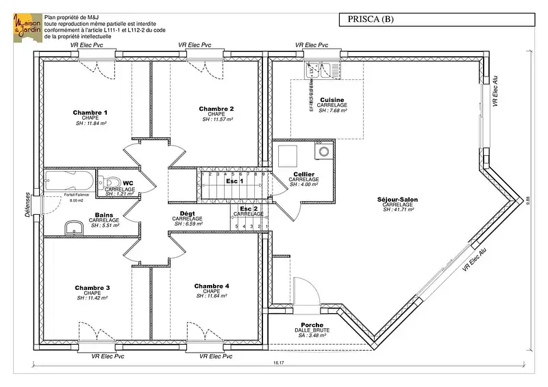 - Prix du modèle de maison : 227 268 €