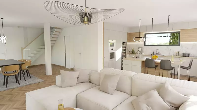 Terrain proposé par un partenaire foncier selon disponibilités et autorisation de publicité au prix de 159 130 €. Hors droit d'enregistrement et frais de notaire. Terrain + Maison proposés au prix de 207 065 € (Hors branchements et raccordements, papiers peints, peintures, revêtement de sol dans les chambres. Tarif modifiable sans préavis). Etiquette énergie : A. Différents modèles disponibles pour ce terrain.