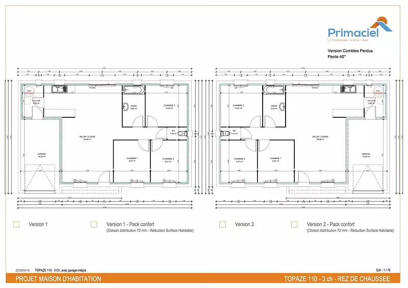 La Topaze se fait remarquer par son porche d'entrée accueillant et son garage intégré, des caractéristiques qui allient fonctionnalité et esthétique. Son plan en L n'est pas seulement un choix de design; il permet également une séparation naturelle des espaces de vie, créant ainsi une harmonie parfaite entre les différentes zones de la maison.