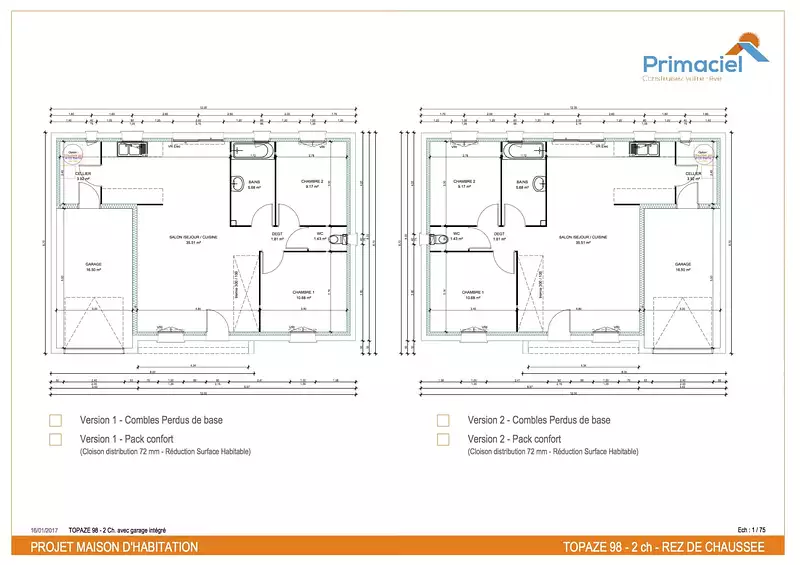 Nous vous proposons cette maison neuve, baptisée ""Topaze"", un modèle de charme issu de la gamme Primaciel, qui se distingue par son design élégant en L. Avec une surface habitable de 68 m², cette maison est parfaitement conçue pour répondre aux besoins d'une vie familiale moderne et confortable. Elle comprend 2 chambres spacieuses et un total de 3 pièces, offrant ainsi un cadre de vie intime et accueillant.
