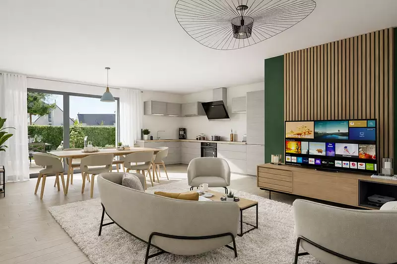 Cette maison allie modernité, fonctionnalité et élégance pour offrir un cadre de vie chaleureux et harmonieux. Son agencement optimisé permet à chaque membre de la famille de profiter d’un espace bien pensé, où confort et praticité se rencontrent. Avec quatre chambres accueillantes, une grande pièce de vie lumineuse, une salle de bain moderne et un cellier pratique, elle répond parfaitement aux besoins du quotidien. Son espace de vie convivial invite aux moments de partage, tandis que ses finitions soignées et son système de chauffage performant assurent un bien-être optimal en toute saison. Son architecture contemporaine et son aménagement astucieux en font un véritable cocon, où il fait bon vivre jour après jour. Pour vous assurer un confort de vie et conformément à la RE2025, nous avons choisi un mode de chauffage par PAC + plancher chauffant, volets roulants électriques. Prix hors peinture, décoration, revêtements de sol dans les chambres, cuisine équipée, frais de notaire, raccordements, dommage ouvrage.