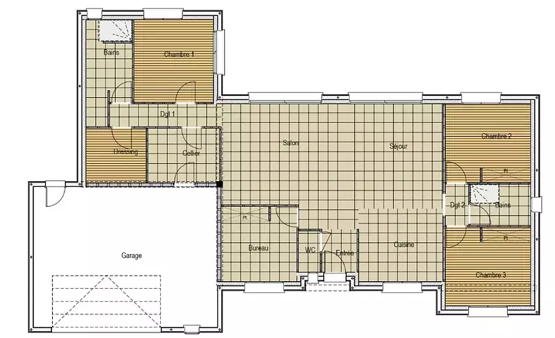 Proposée par MAINE CONSTRUCTION – 6 pièces - 3 chambres - terrain 2 277 m²