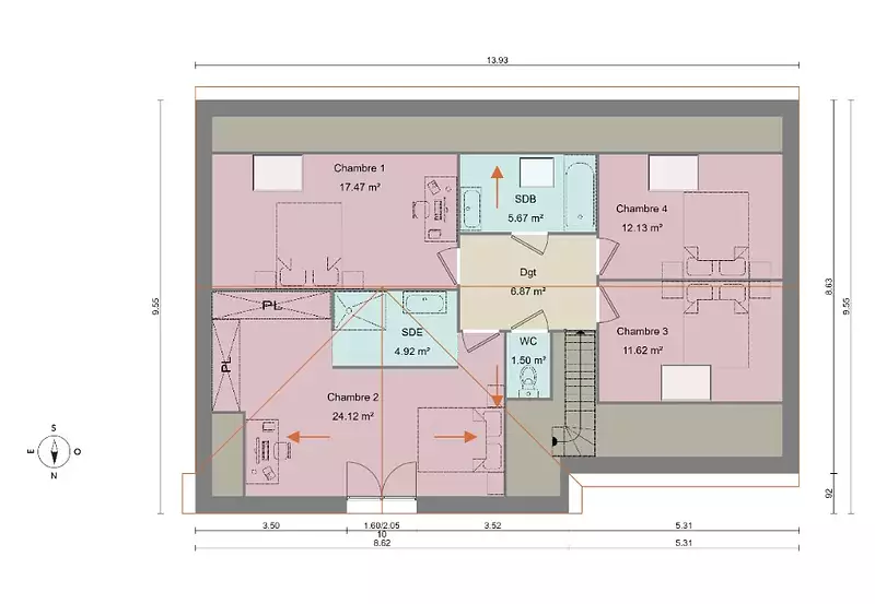 Proposée par MAISONS LES NATURELLES – 8 pièces - 5 chambres - terrain 900 m²