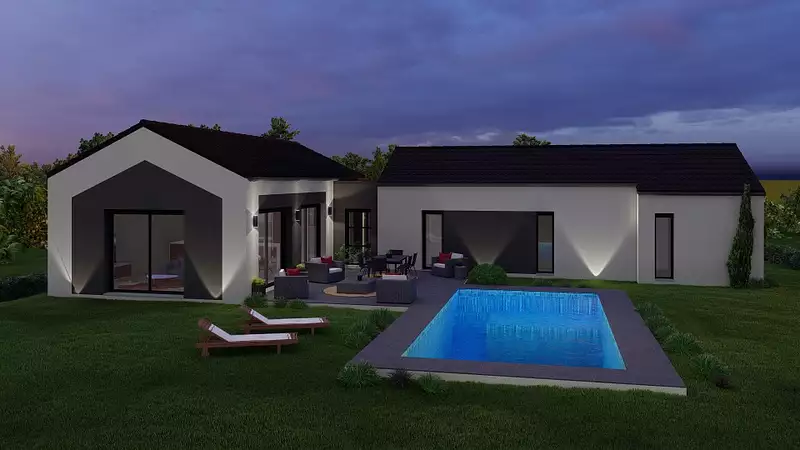 Terrain proposé par un partenaire foncier selon disponibilités et autorisation de publicité au prix de €. Hors droit d'enregistrement et frais de notaire. Terrain + Maison proposés au prix de 349 999 € (Hors branchements et raccordements, papiers peints, peintures, revêtement de sol dans les chambres. Tarif modifiable sans préavis). Etiquette énergie : A. Différents modèles disponibles pour ce terrain.