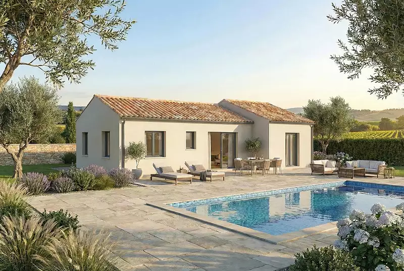 Sur ce terrain, nous vous proposons cette maison neuve : le modèle Fronsac, une belle maison de plain-pied de 80 m², conçue par Maisons Omega, détenteur du label Maisons de Qualité.