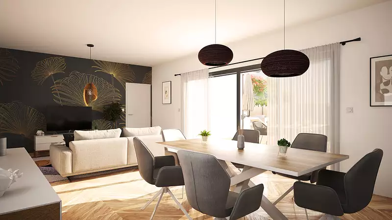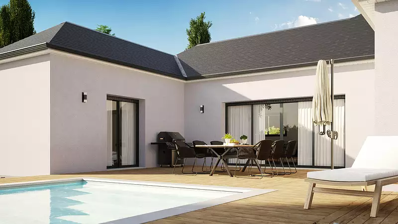 Le modèle Islette séduit par son élégance intemporelle et son agencement en L parfaitement pensé. Avec ses 122 m² de plain-pied, cette maison contemporaine allie confort, fonctionnalité et luminosité, pour un cadre de vie à la fois convivial et apaisant. La pièce de vie centrale, baignée de lumière naturelle, devient le cœur de la maison, idéale pour partager des moments en famille ou entre amis. L’espace nuit, bien séparé, comprend 3 chambres, dont une suite parentale avec salle d’eau privative, ainsi qu’une seconde salle de bain pour encore plus de confort. Un cellier attenant à la cuisine, deux garages pratiques et une ouverture fluide sur le jardin complètent ce modèle au design soigné. Le modèle Islette se distingue par sa configuration astucieuse, son style modulable et ses prestations de qualité, pensées pour offrir un bien-être durable au quotidien. Pour vous assurer un confort de vie et conformément à la RE2025, nous avons choisi un mode de chauffage par PAC + plancher chauffant et volets roulants électriques. Prix hors décoration, frais de notaire, raccordements, dommage ouvrage. (Piscine non contractuelle et non comprise dans le prix. ).