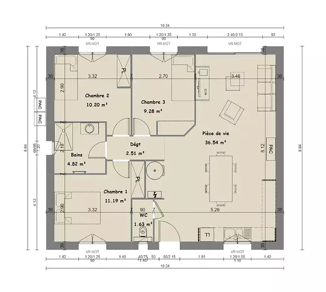 Proposée par MAISONS FRANCE CONFORT – 4 pièces - 3 chambres - terrain 900 m²