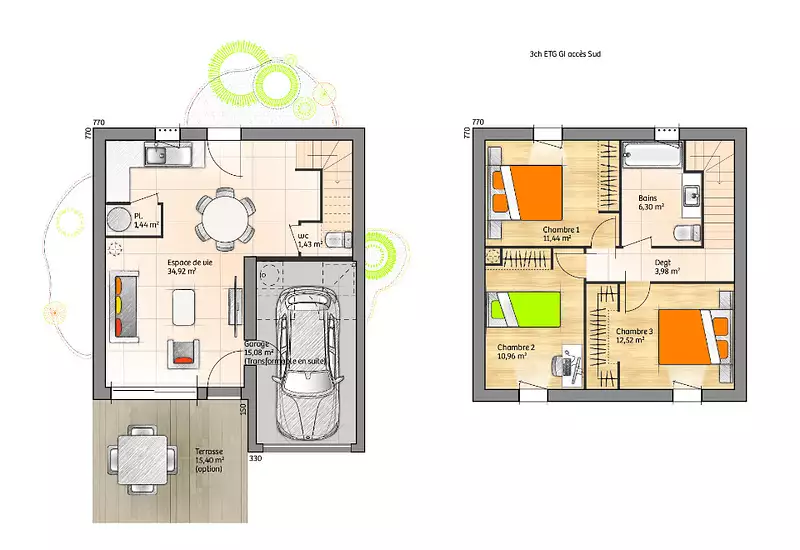 Proposée par MAISONS BERNARD JAMBERT – 5 pièces - 3 chambres - terrain 382 m²