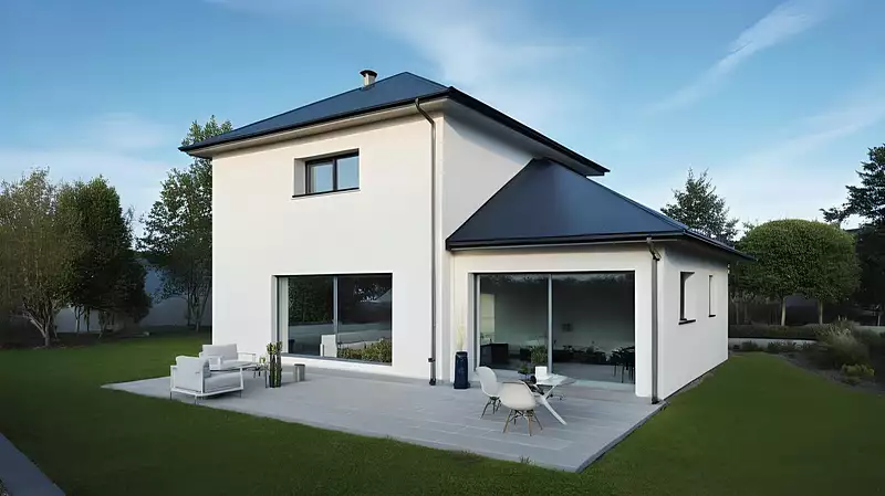 Cette maison, pensée pour un mode de vie moderne, est conçue pour répondre aux besoins d'une famille tout en intégrant des espaces de vie lumineux et fonctionnels. Vous pourrez imaginer vos moments de partage autour de repas conviviaux dans un salon bien agencé, tandis que les enfants profiteront pleinement de leur jardin.